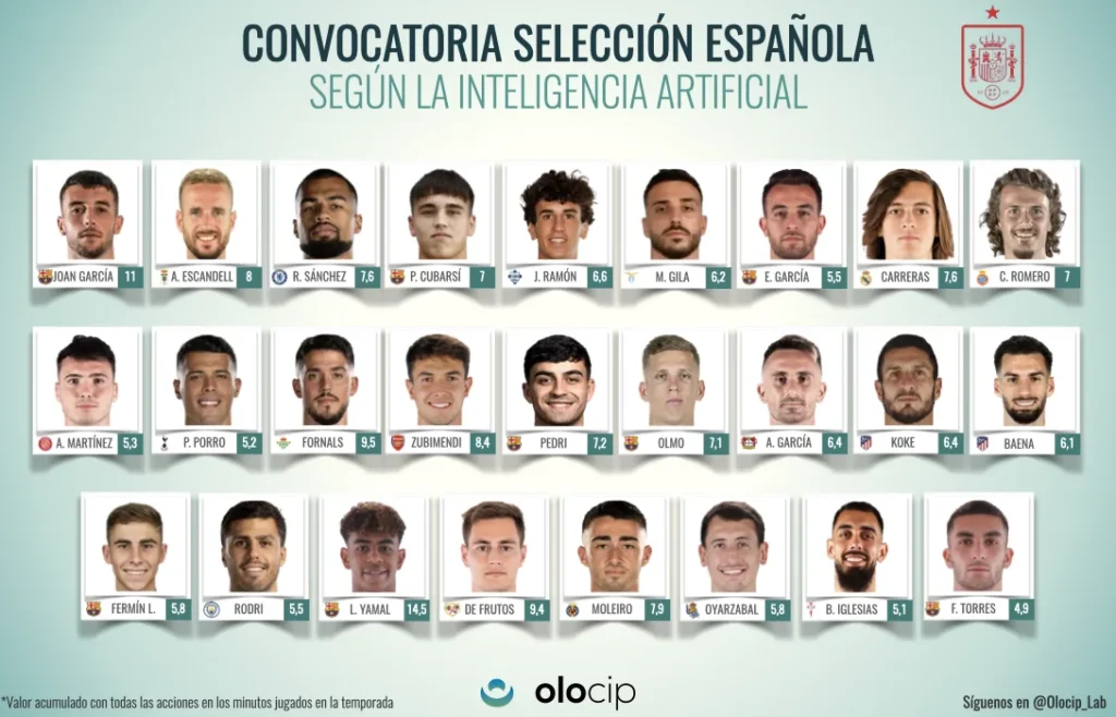 En Olocip, líderes en la aplicación de inteligencia artificial para el análisis de rendimiento de jugadores de fútbol profesional, hemos realizado un análisis sobre el desempeño de los jugadores españoles durante lo que va de temporada. Este estudio se ha centrado en los datos de la temporada 2025/26 de competiciones domésticas y ha seleccionado a futbolistas de diferentes ligas: Premier League, LaLiga, Serie A, Ligue 1, Bundesliga, Liga Portugal, Saudí Pro League y Qatar Stars League.