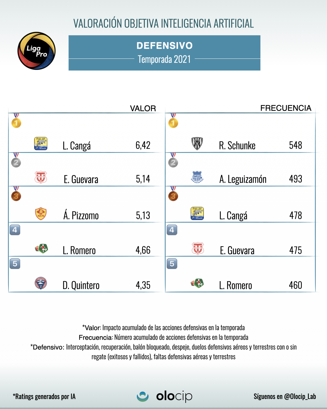 Con la Primera y Segunda ronda de la máxima competición de Ecuador ya finalizadas, y con más de 2700′ en las 30 jornadas disputadas, se pueden hacer los primeros balances de rendimiento y conocer a los mejores jugadores de la liga ecuatoriana. Para ello utilizaremos inteligencia artificial, la única tecnología capaz de sacar conclusiones objetivas basándose en la calidad de las acciones y no solo en la cantidad.