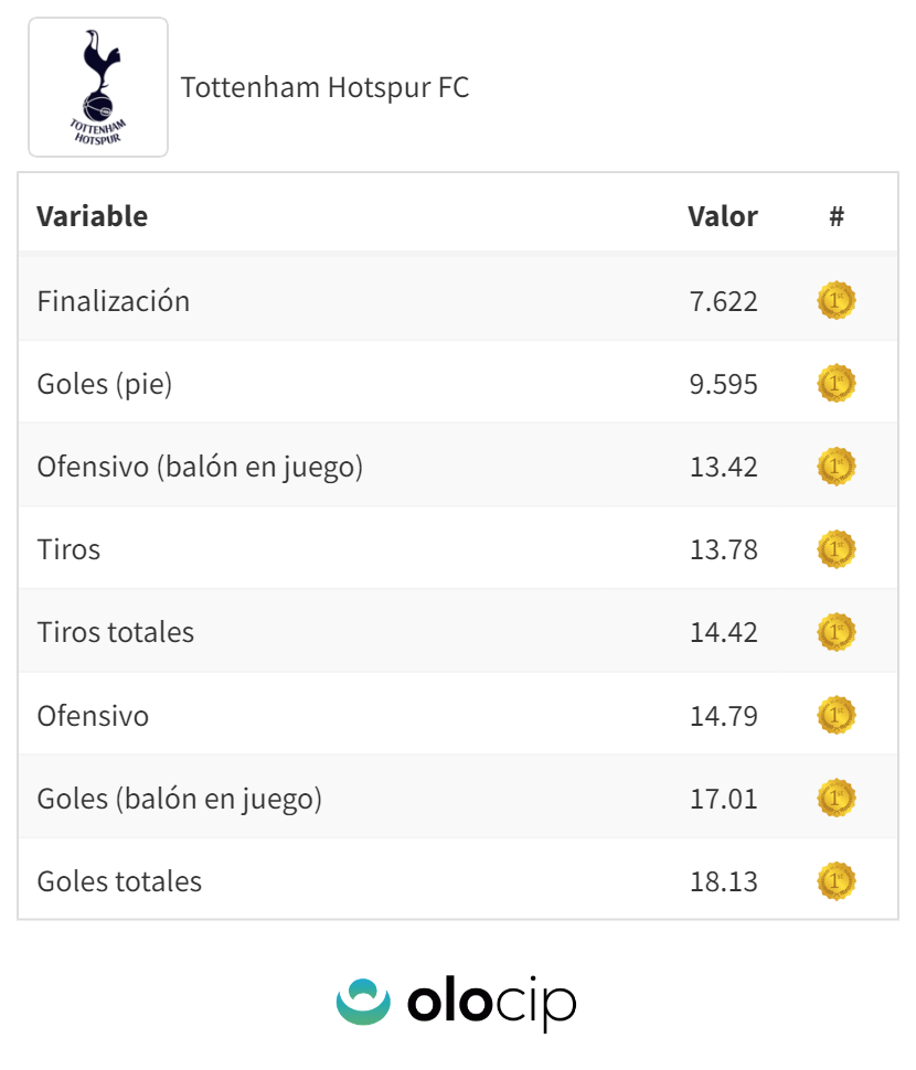 Además de su rendimiento en la Premier, Kane se sitúa como el 2º delantero centro de las 5 grandes ligas que más valor genera con su finalización y en la faceta ofensiva, solo por detrás de Haaland.