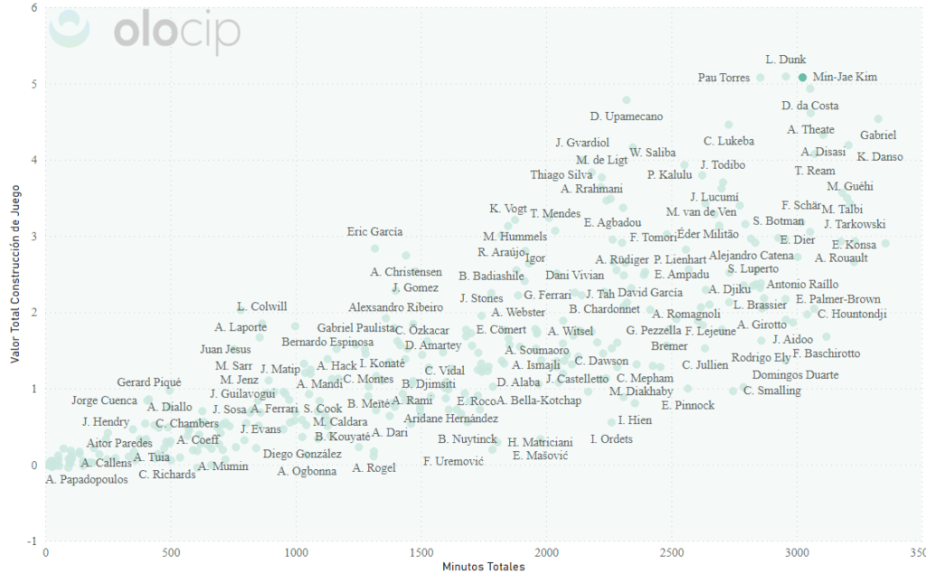 El central del Napoli ocupa el 2º lugar entre los defensores de las cinco grandes ligas en cuanto a su capacidad para construir juego. Gracias a su gran trato de balón, el coreano es indispensable en la salida del balón del equipo dirigido por Spalletti, siendo el primer jugador del equipo que más valor genera con la construcción de juego (5.08).