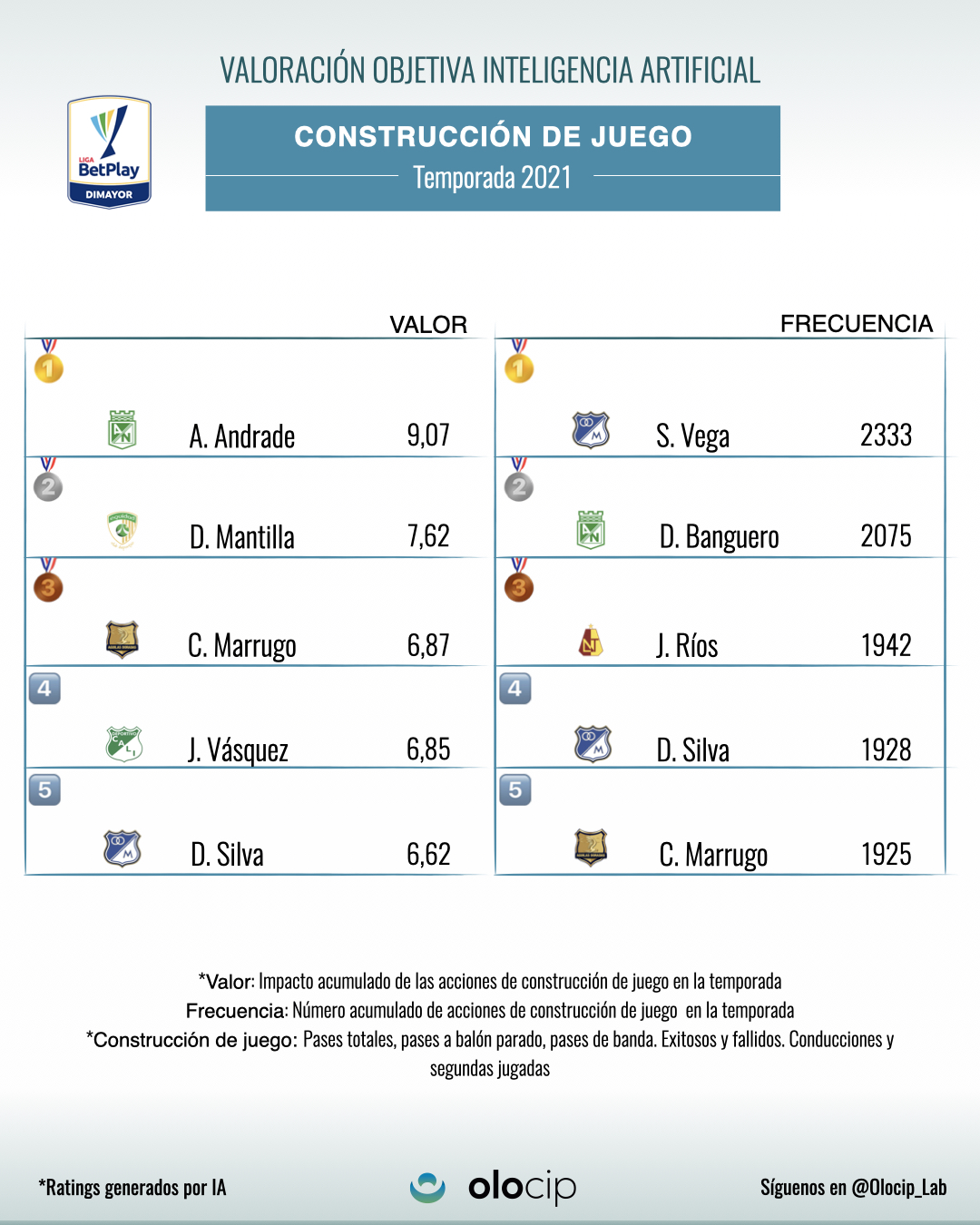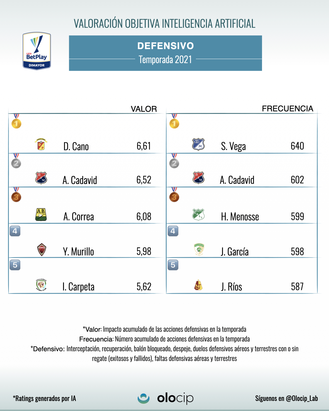 Se terminó la fase regular de la Primera División de Colombia. Con más de 3400′ en las 38 jornadas disputadas se pueden hacer los primeros balances de rendimiento y conocer a los mejores jugadores de la liga colombiana. Para ello utilizaremos inteligencia artificial, la única tecnología capaz de sacar conclusiones objetivas basándose en la calidad de las acciones y no solo en la cantidad.